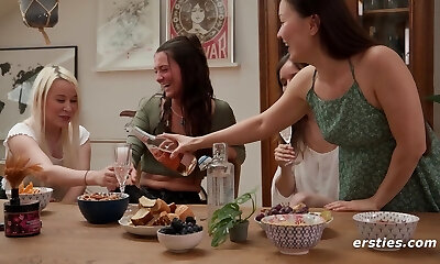 Four hot all girl amateurs tasting muff and fingering hard